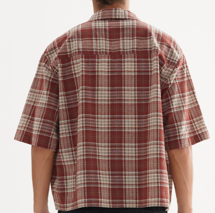 Casual Short-Sleeved Shirt Customized Organic Cotton Mens Solid Vintage Style Button-Up Anti-Wrinkle Breathable Summer Poplin