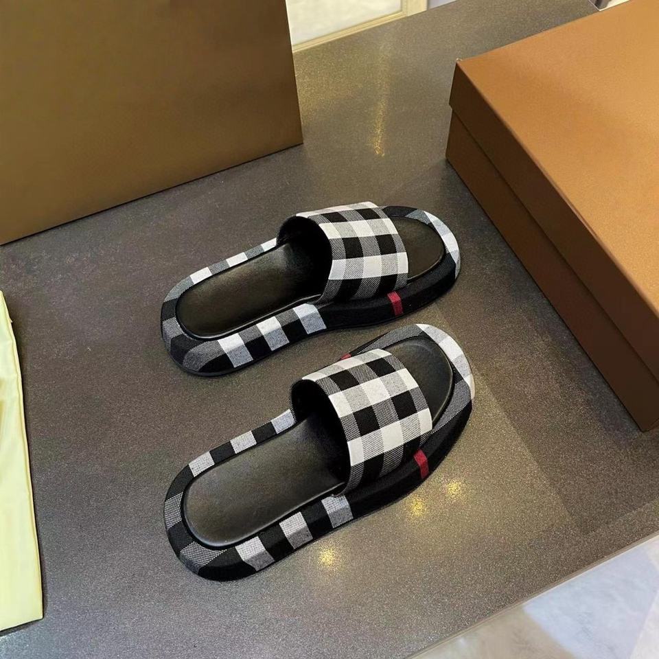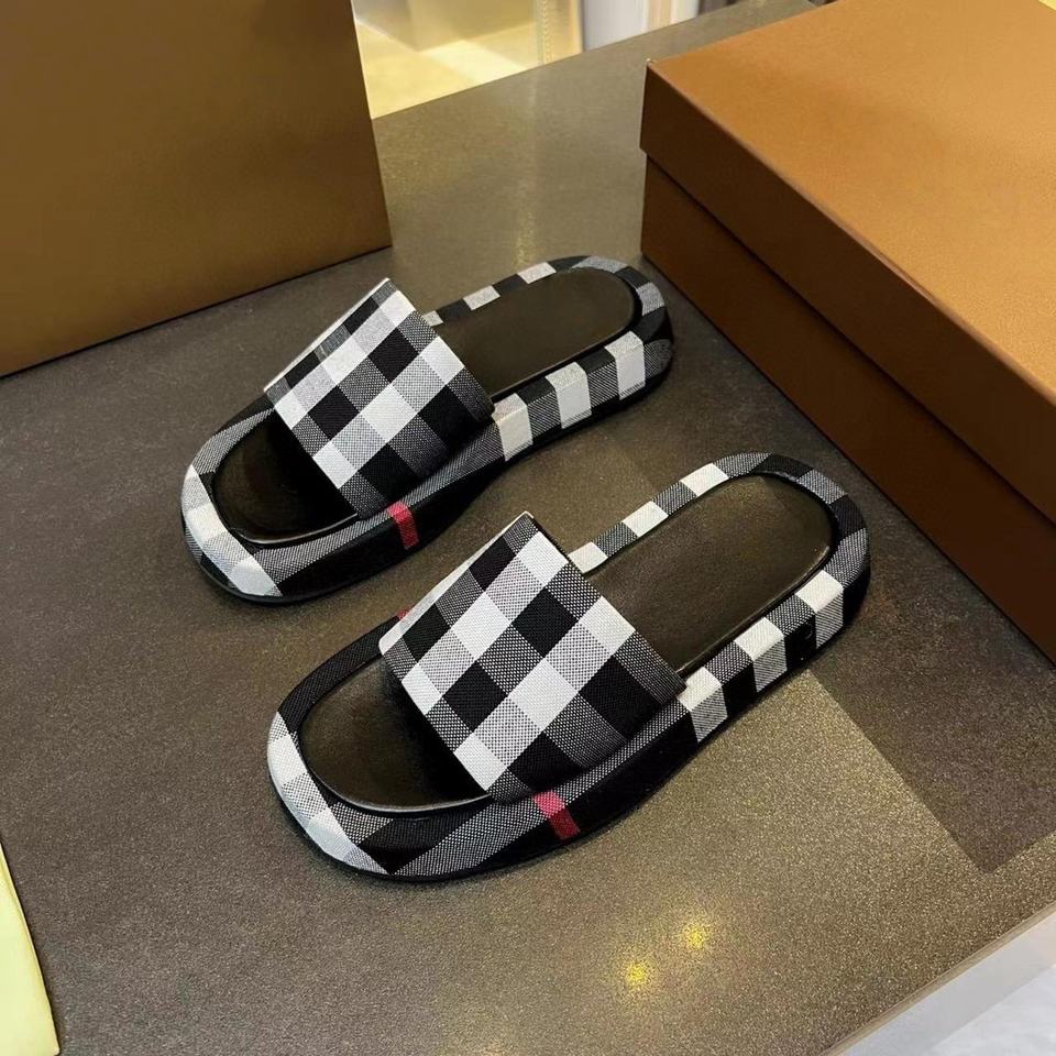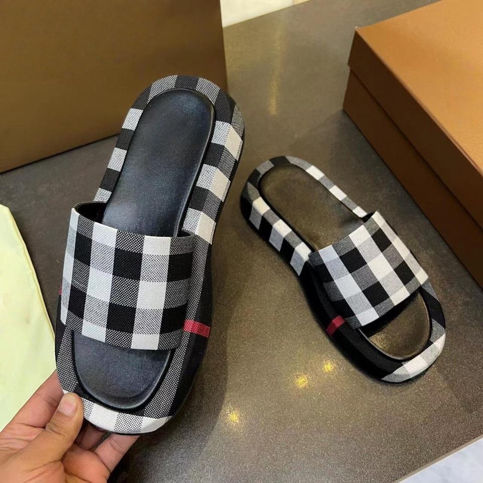 Casual thick-soled slippers, designed for women, checkered and striped, fashionable and suitable for daily wear and outdoor use.