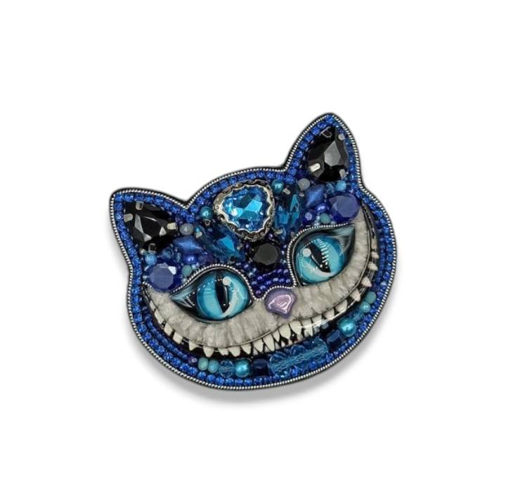 Cat Evil Smile Face Blue Purple Brooch Fashion Brooch Crystal Pearl Hand Embroidery Bullion Wire Parties Weddings Children
