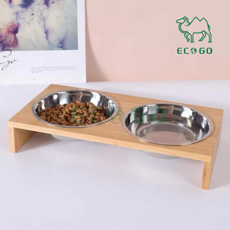 Cat Feeder Bamboo Sublimation Dog Bowls in Wooden Stainless Steel Bamboo Dog Pet Bowl Stand