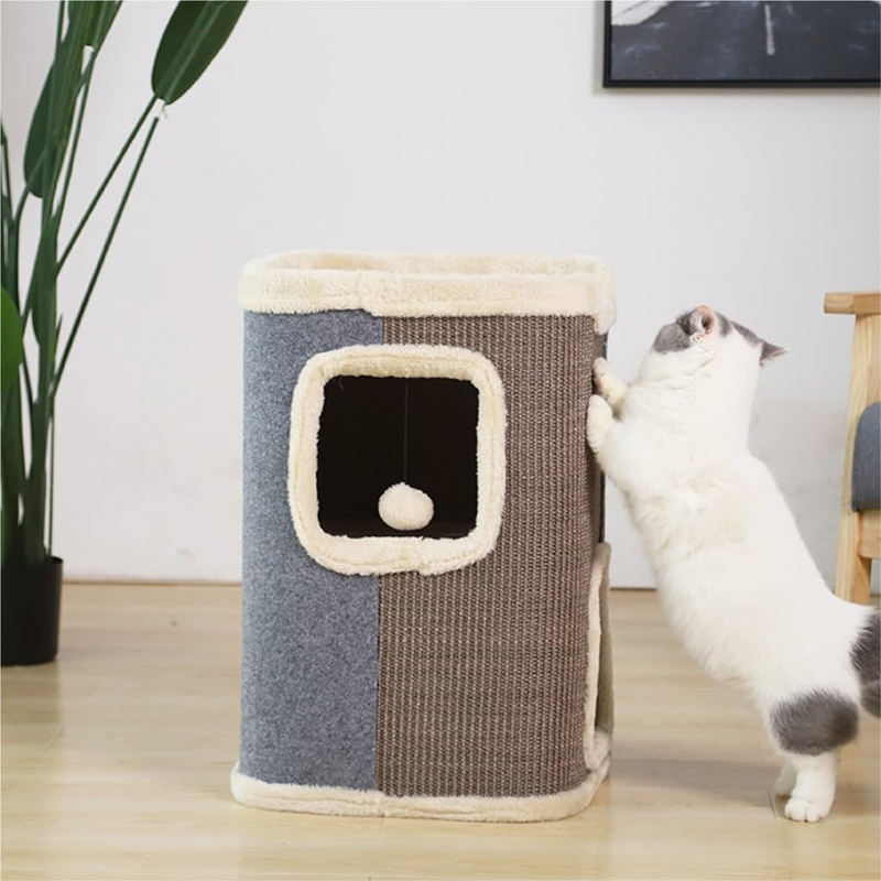 Cat House for Indoor Multi-Level Cat Condo Foldable Cave Bed Double Layer Sisal Cat Scratching Post Space-Saving Pet Furniture