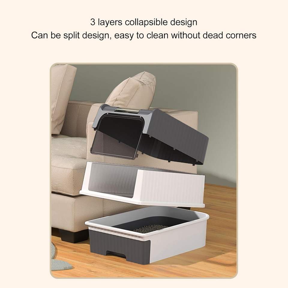 Indoor Cat Toilet with Drawers Top Exit Gray