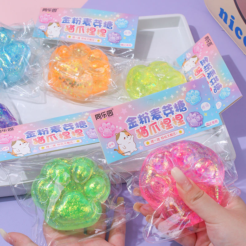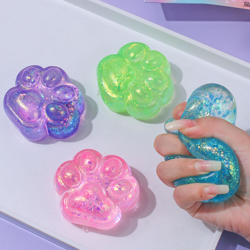 Plastic Cat Paws Glitter Sugar Ball Squishy Toy for Adults Kids Stress Relief Sensory Fidget Slow Rise Malt Syrup Filled