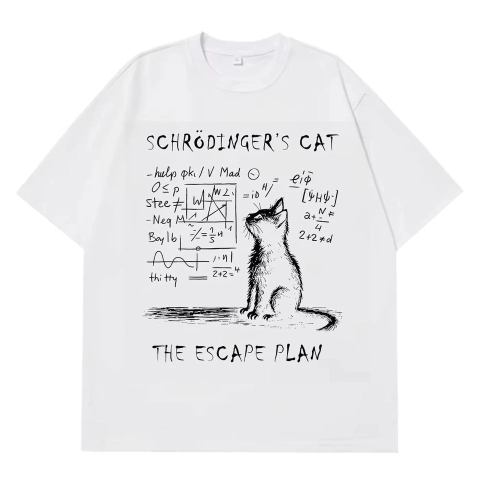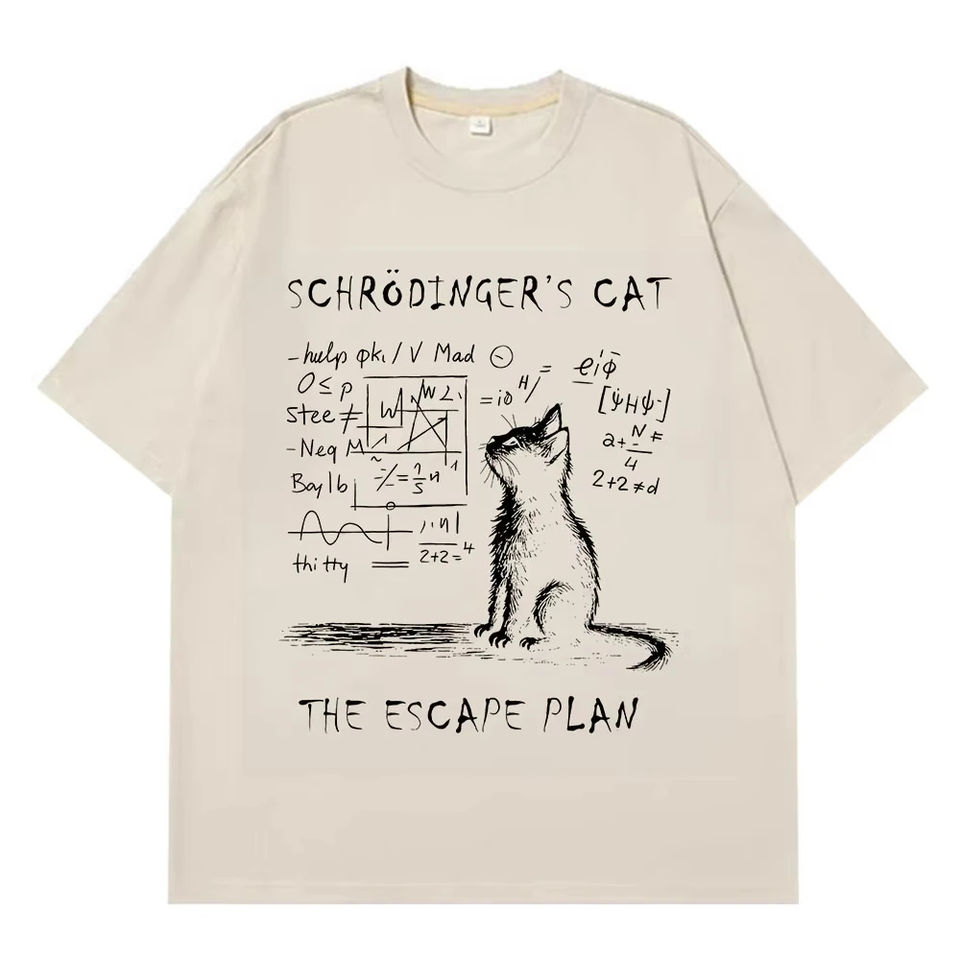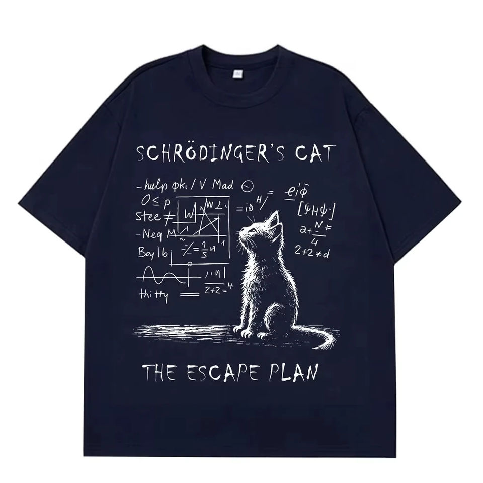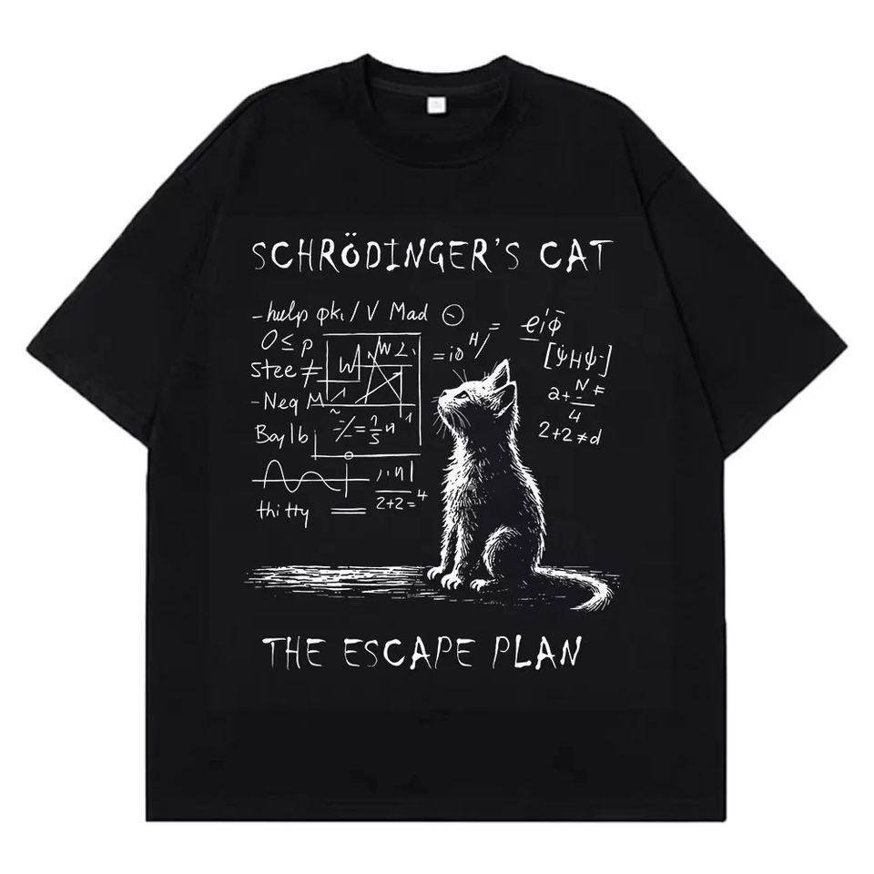 Cat Physics Quantum Mechanics Creative Print Summer Short-sleeved Cotton T Shirt Men Women Streetwear Loose T-shirts