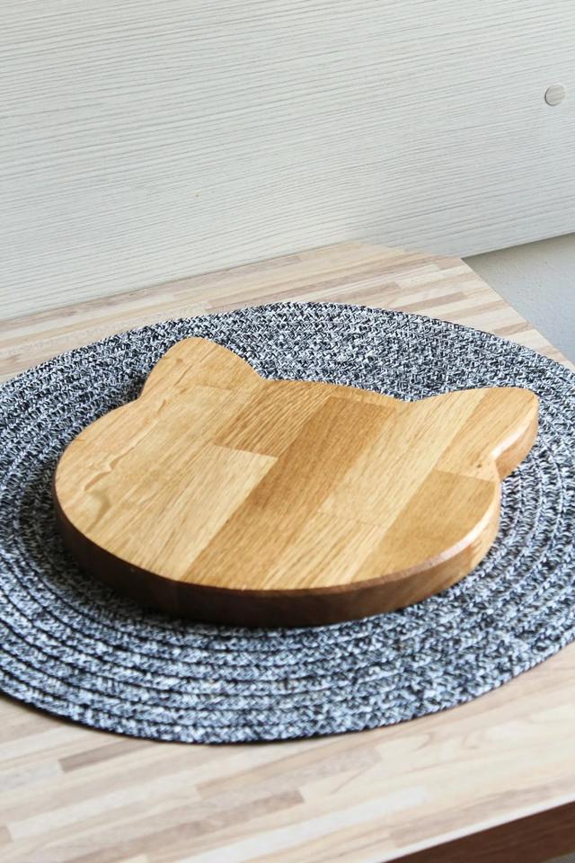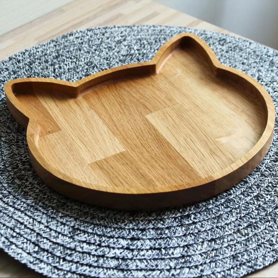 Custom Engraved Oak Wood Cat-Shaped Minimalist Tray Food Safe Bowl for Snacks Jewelry Keys & Treats Wall Art Product