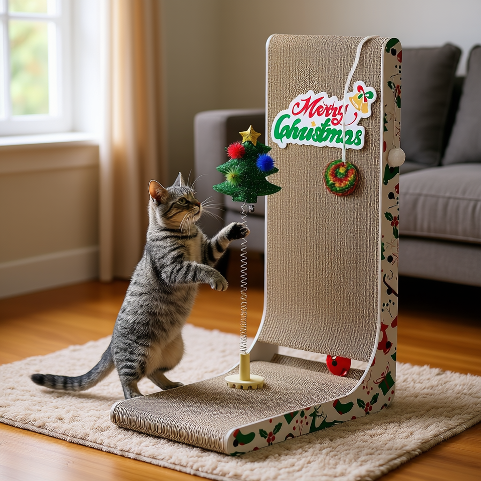 Cat Tree Scratching Pad Christmas Pattern Sisal Material Indoor Use 1 Level Cut Style