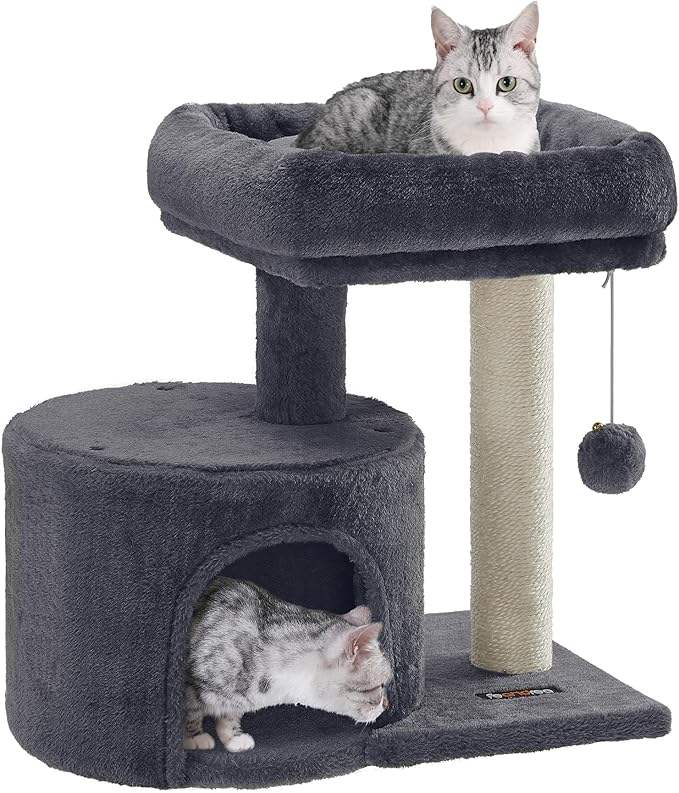 Cat Tree, Small Cat Tower with Sisal Scratching Post, Plush Condo with Padded Perch, for Small Spaces, Kittens, Smoky Gray