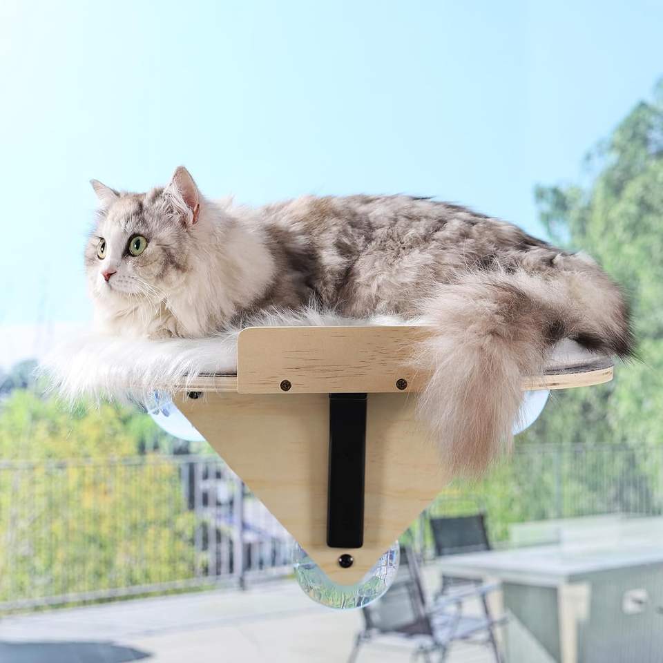 Farmhouse-Style Wood Cat Bed with Wall Shelves and Window Perch for Cats