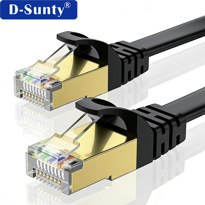 Cat8 RJ45 Patch Flat Ethernet Cable Black SFTP Dual Shield 40Gbps 2000MHz Network Cable