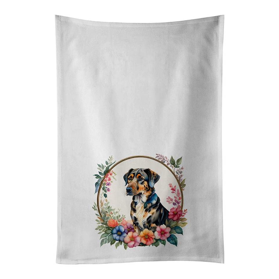 Catahoula Leopard Dog Flowers Kitchen Towel Set 2 White Dish Towels 1 Decorative Hand Face Hair Yogurt Tea Dishcloth 19 X 28