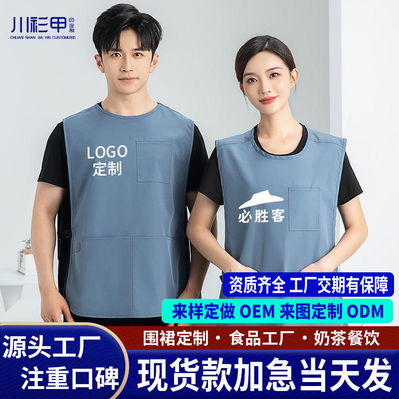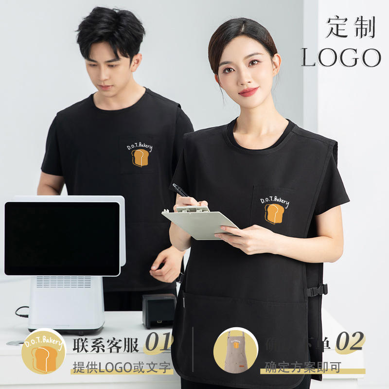 Cationic Waterproof Solid Color Pocket Vest Apron Loose Casual Workwear Restaurant Bar Uniforms