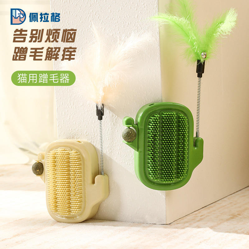 Power Source:Green Scratcher with Rotating Ball Cat Teaser Wand Cream Color