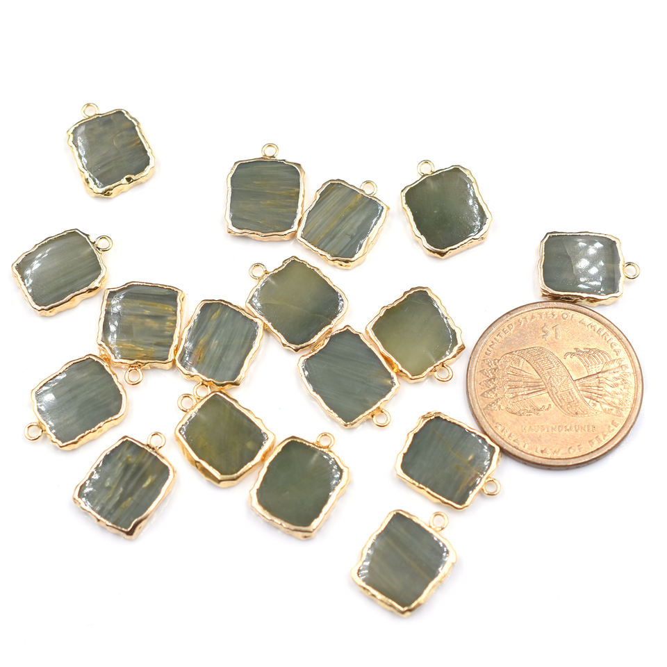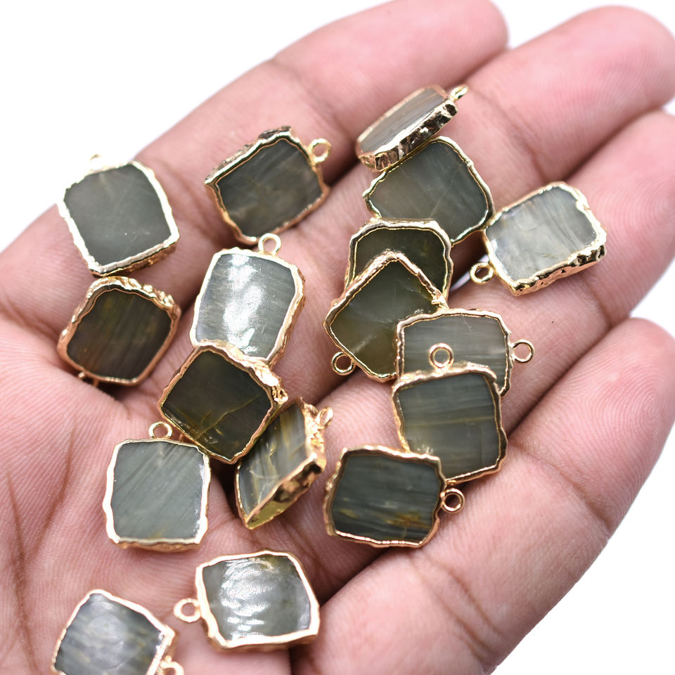 Cats Eye 15 to 17 MM With Bail Rectangle Shape Gold Plated Pendant For Jewellery Making