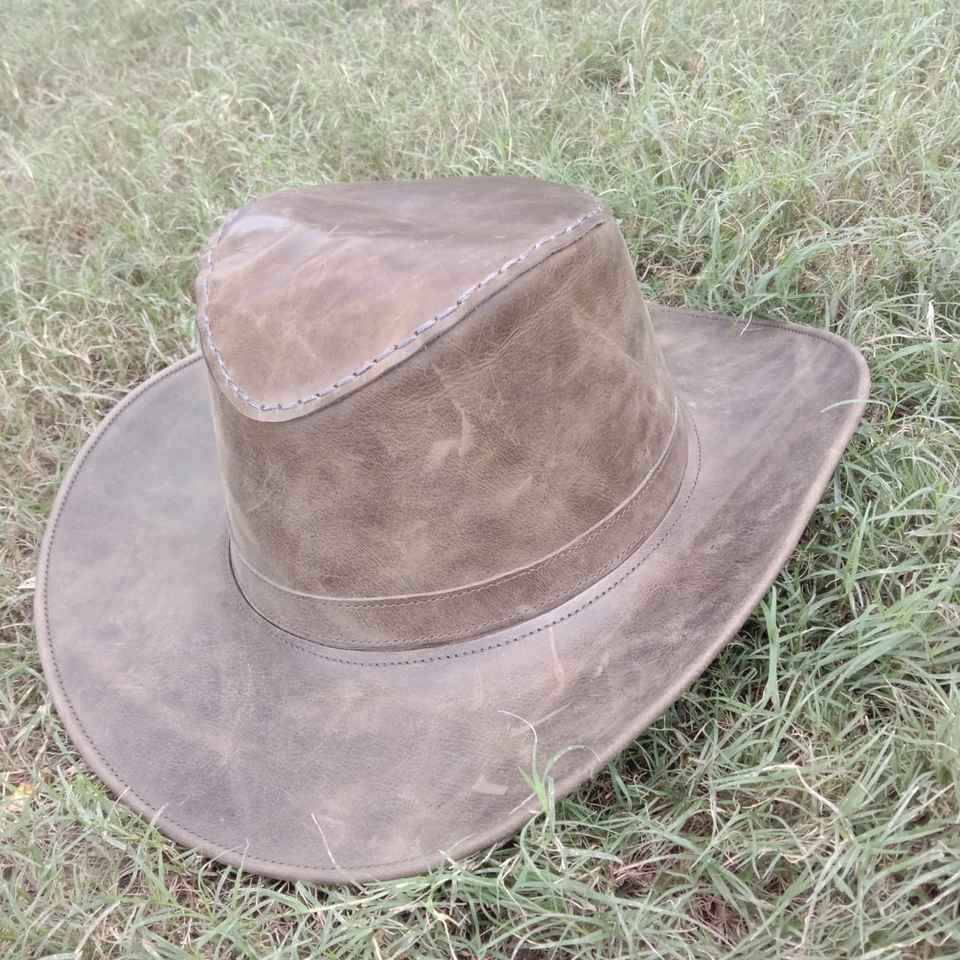 Cattleman Crown Brown Leather Hat Vintage Cowboy Leather Hats Unique Stylish Genuine Leather Tom Mix Open Crown Hats