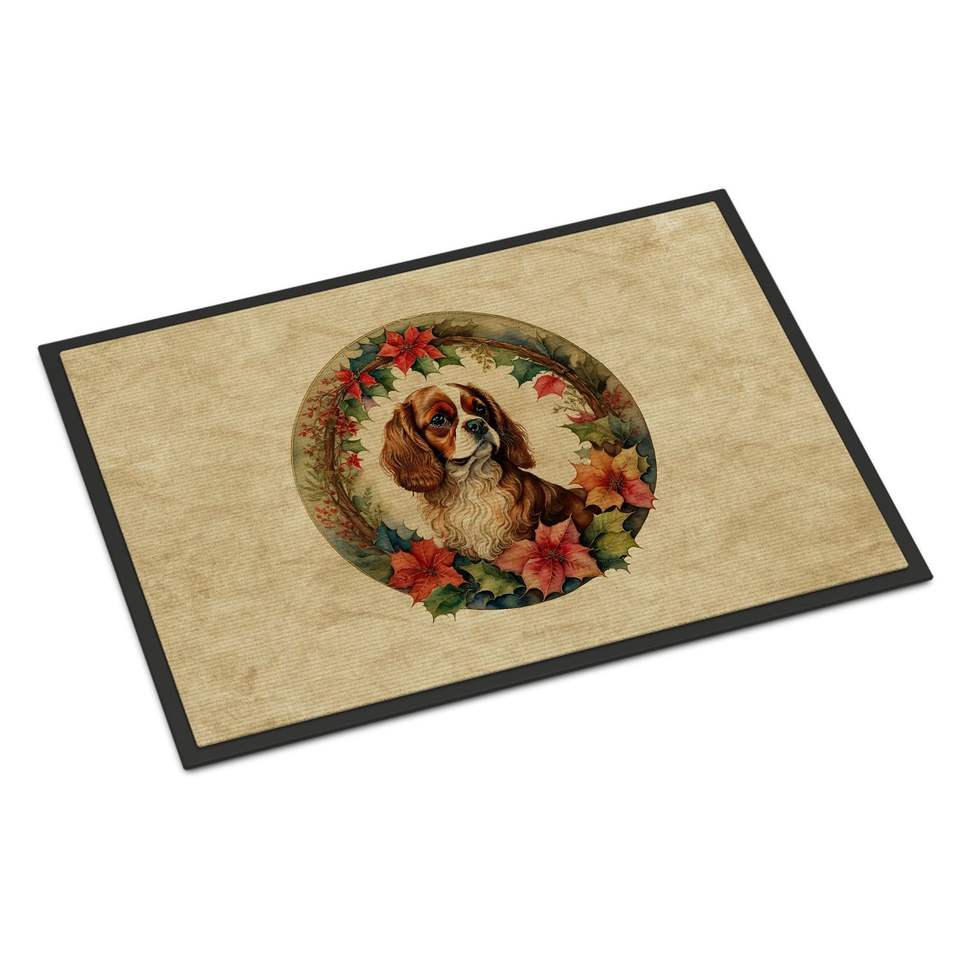 Cavalier Spaniel Christmas Flowers Doormat Non-Slip Indoor/Outdoor Entryway Rug Low Pile 24H X 36W Washable Front Door Mat