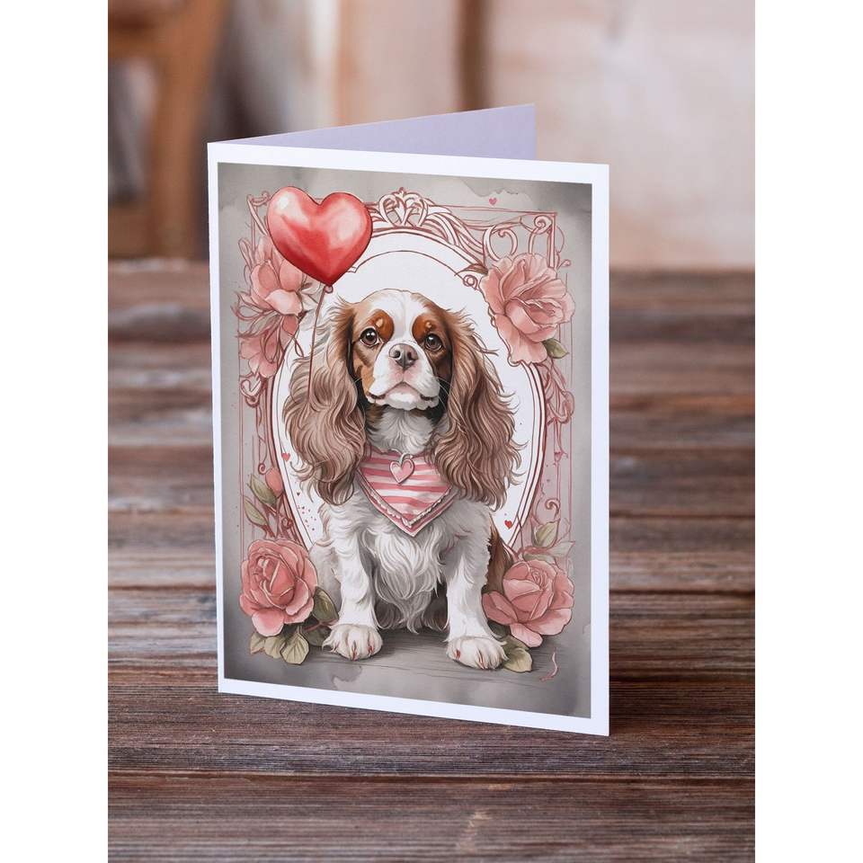 Cavalier Spaniel Valentine Roses Whimsical A7 Greeting Cards Pack of 8 Blank Note Cards with Envelopes 5x7 Size