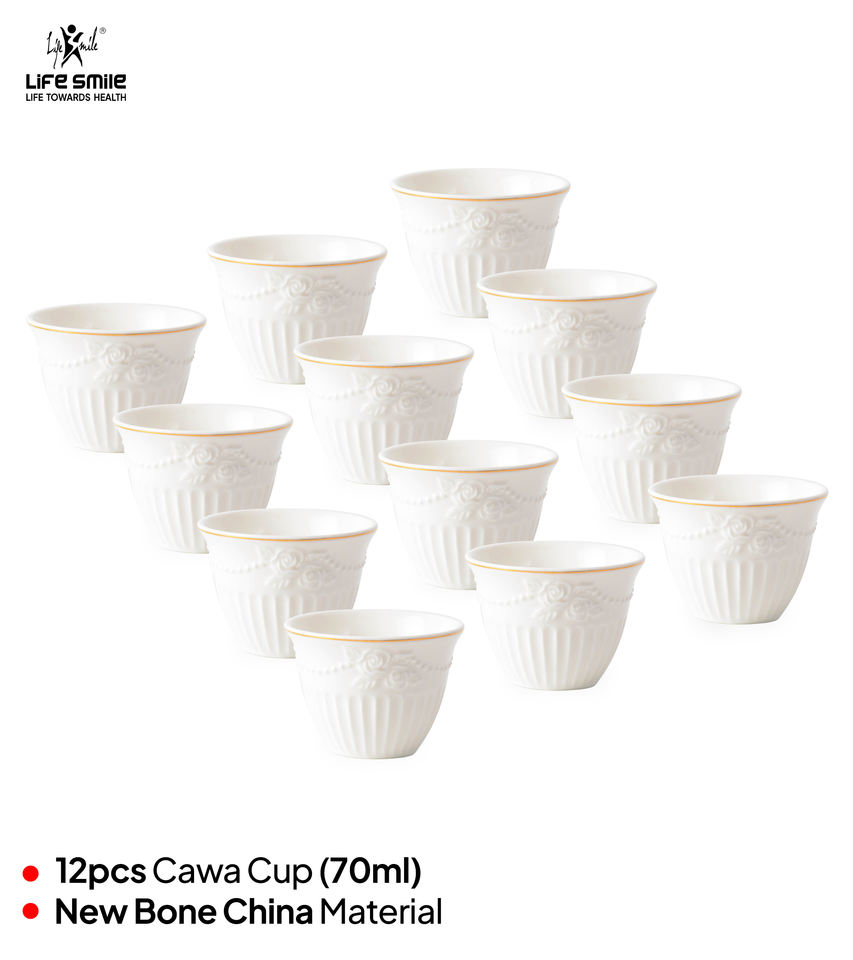 Cawa Cups Set New Bone China Material Set of 12 Pcs White Color Elegant Modern Luxury Design