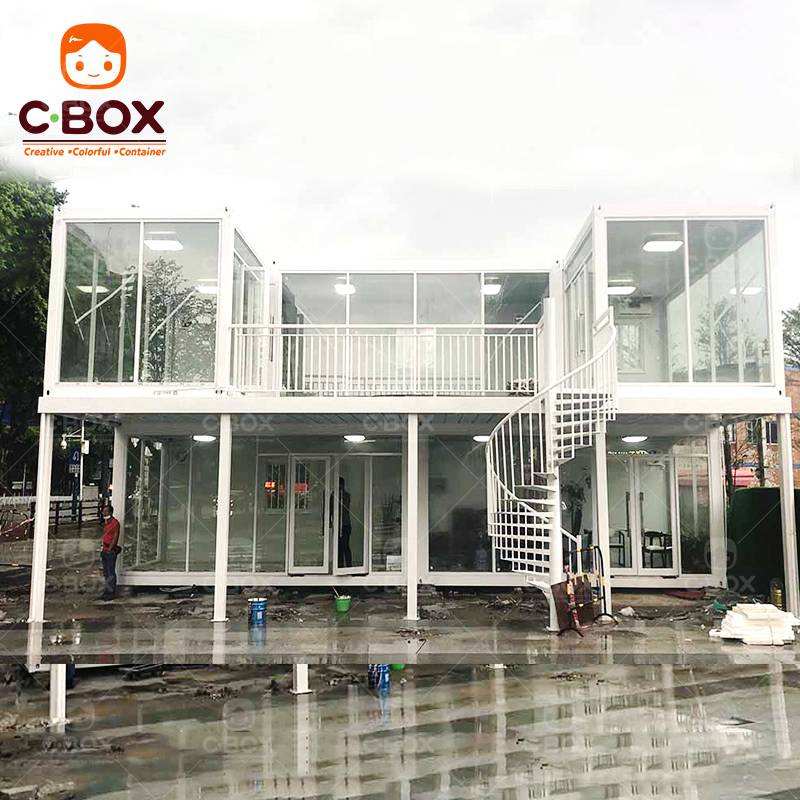 Cbox Customized Prefab Glass Curtain Wall Flat Pack 2-Story Office Fireproof Hotel Villa for Outdoors Modular Container House