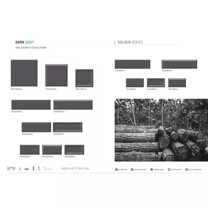 Cedar Brown Golden Series Ceramic Subway Wall Tiles 75x150 200x200 150x150 100x100 100x300 100x400 100x200 Matte Glossy Glazed