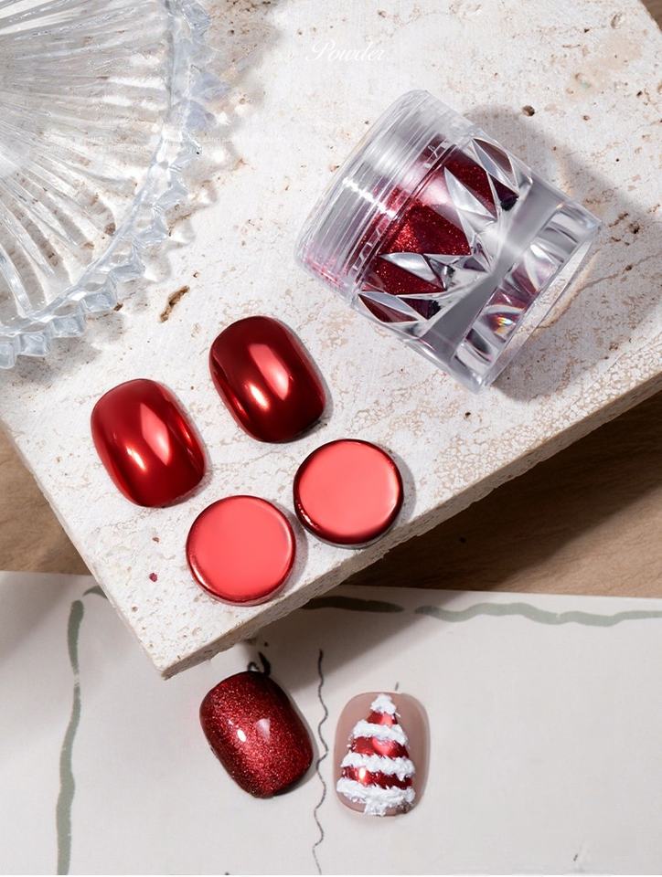Celebrate Festival Mirror Chrome Powder Red Color Smooth Shiny Magic Chrome For Nail Decorative