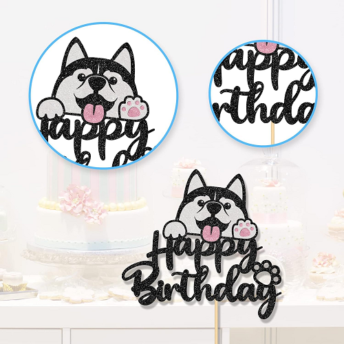 Celebrate a furry fun time with Happy Birthday Husky Cake Topper and cute puppy theme party supplies perfect for dog lovers