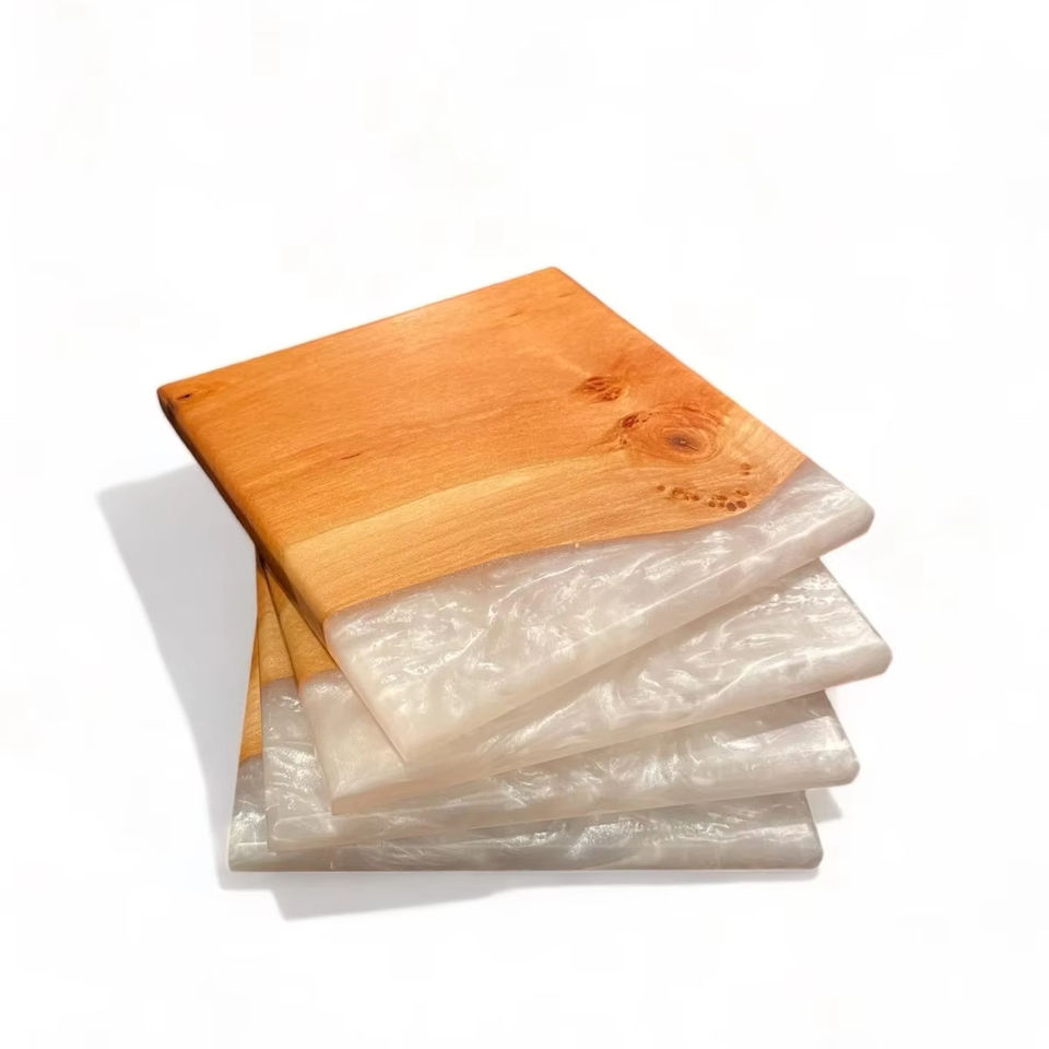 Celestial Charm Epoxy Resin Tea Plate & Coaster Collection Luxury Handcrafted Wooden Set for Fine Dining and Home Decor Gifts