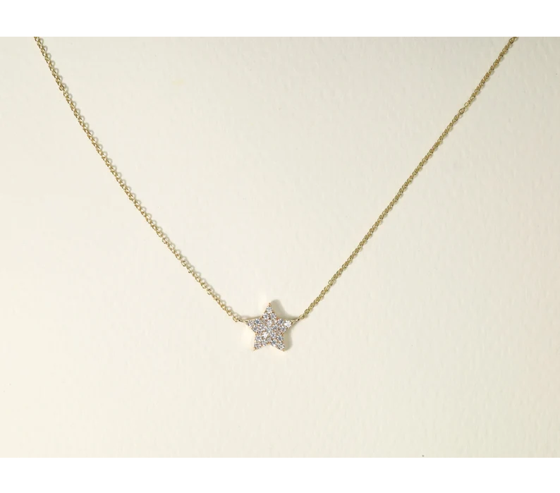 Celestial Diamond Star Necklace 14K Solid Gold Dainty Minimalist Gold White Gold Pendant Necklace Everyday Cosmic Gift for Her