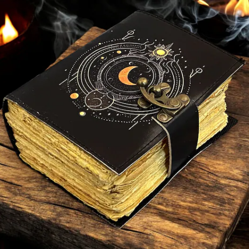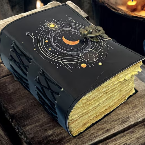 Product name:Celestial Moon Phase Leather Printed Black Grimoire