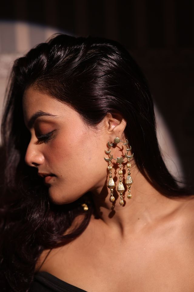 Celestial Rhythm Brass Chandelier Earrings Fashionable Statement Accessory