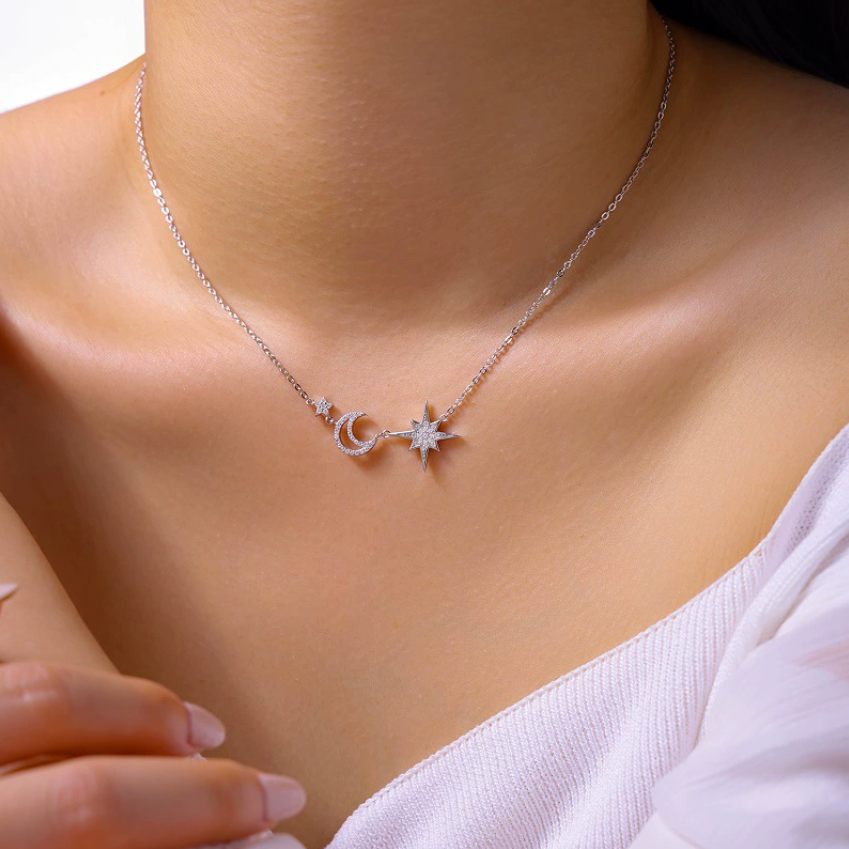 Celestial Star and Moon Pendant Necklace with Sparkling Crystals for Dreamy Daily Wear and Special Occasions