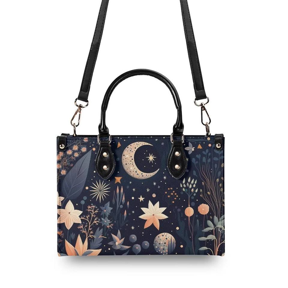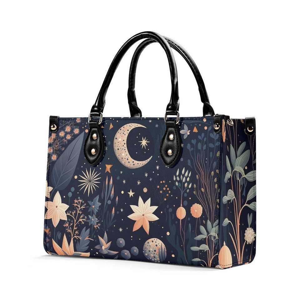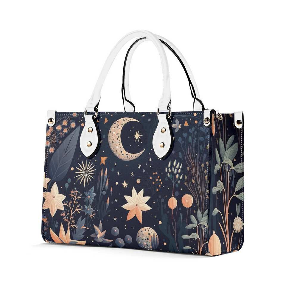 Celestial and Floral PU Leather Handbag for Women Dropship POD Luxury Lady Tote Bag