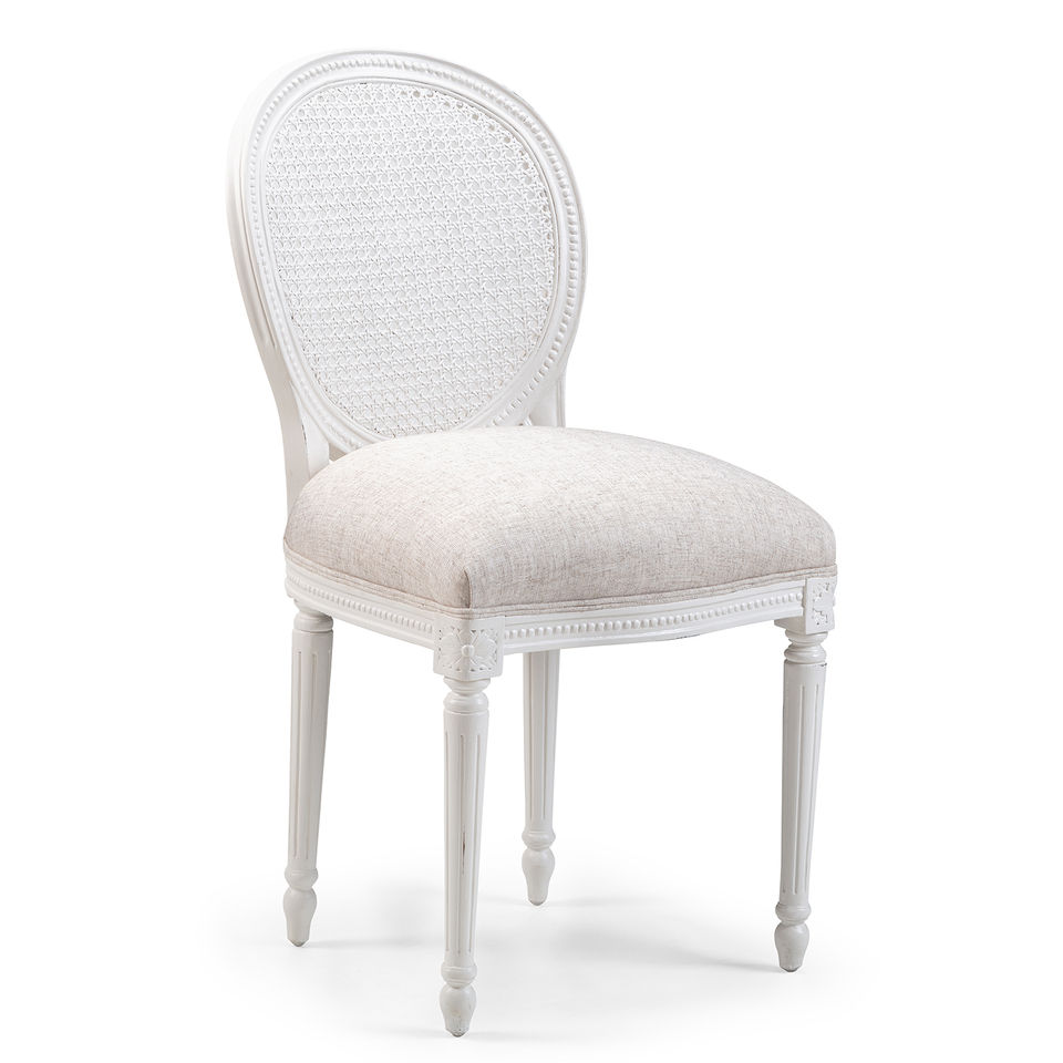 Celline Midcentury Dining Chair High Quality Solid Wood White Finish Colorful Woven Rattan Backrest for Wedding Restaurant