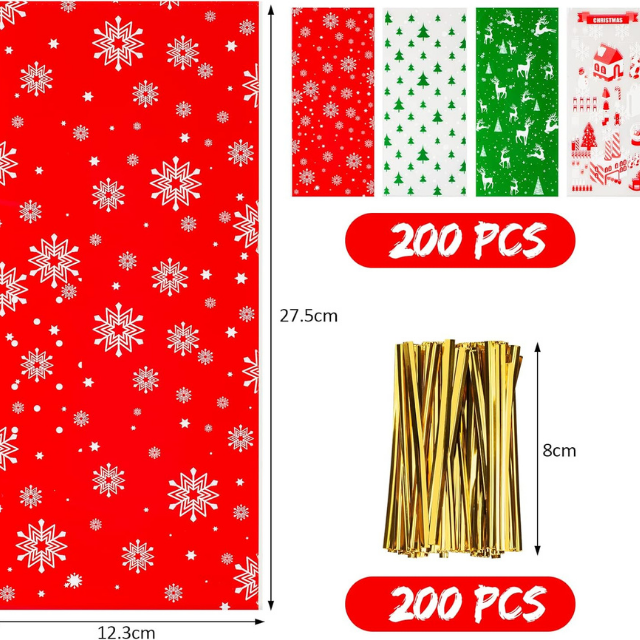 Cellophane Gift Bags for Christmas PP Plastic Candy Bags with Twist Tie for Packaging Garments Generational Plastic Product