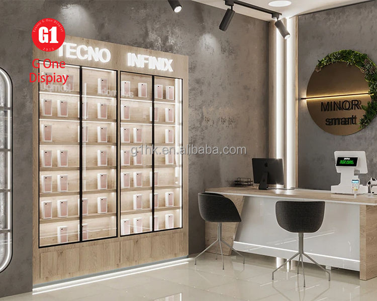 Cellphone Accessories Store Decoration Cellphone Display Interior Design Wooden Display Table for Mobile Phone Shop Cabinet