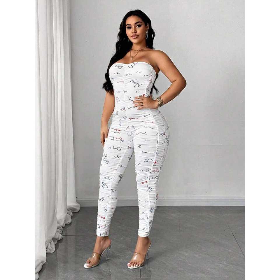 Celure Women's High Elasticity Plus Size Bodycon Jumpsuit Comfortable Fabric Printed Playsuits Women's Jumpsuits Playsuits