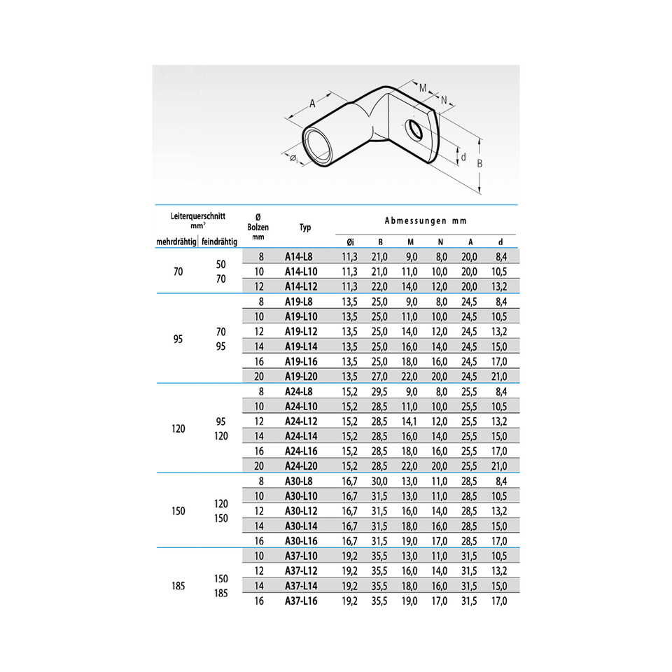 Cembre A14-L8 90° Shopped 70mm² M8 Plug & Socket Pipe Cable Shoe