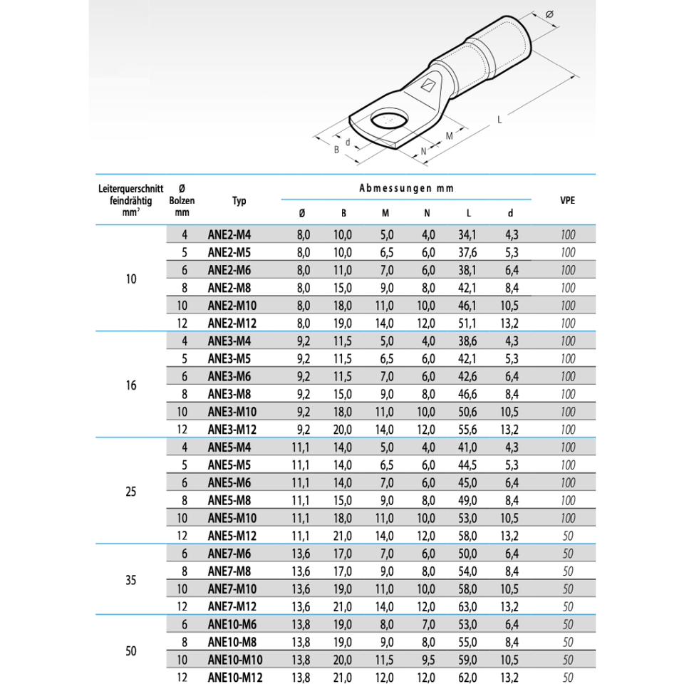 Cembre ANE2-M5 nylon-insulated ring terminal 10mm² M5