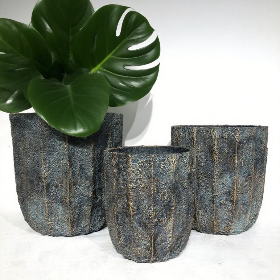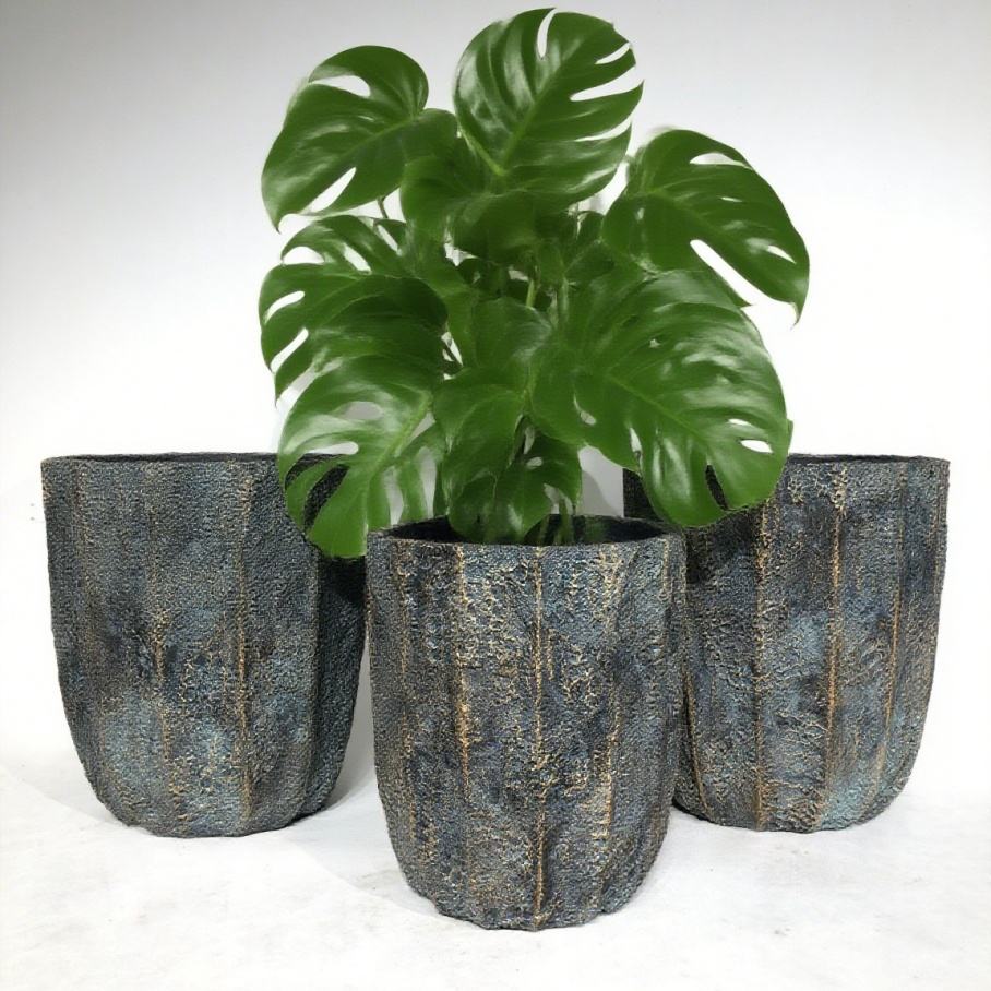 Cement Modern Eco-friendly Indoor/Outdoor Home Balcony Garden Decor Set Hand Carved Circular Flower Pots Planters for Floor Use