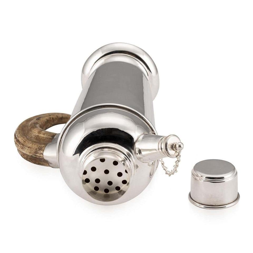 Century Warthog Tooth Handled Cocktail Shaker in Silver Plate Cups with Lids and Straws bar Accessories Cocktail Shaker Set
