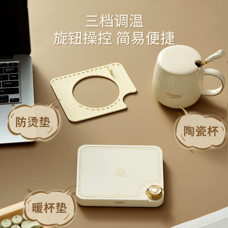 Ceool Heated Cup Mat Rectangle 55C Constant Temperature Ceramic Coffee Mug Warmer With Safety Protection For Office Home