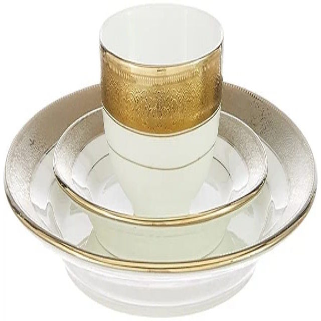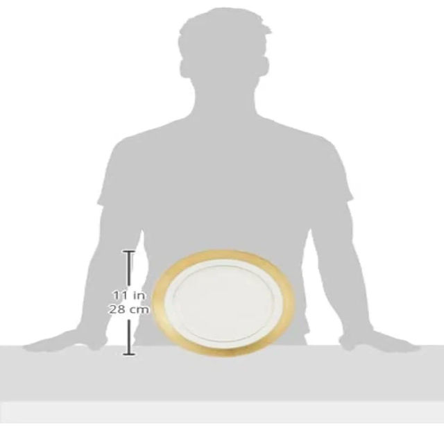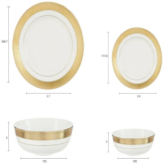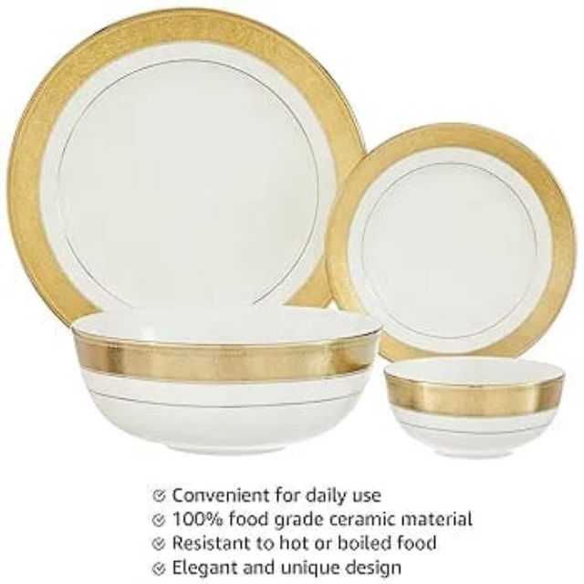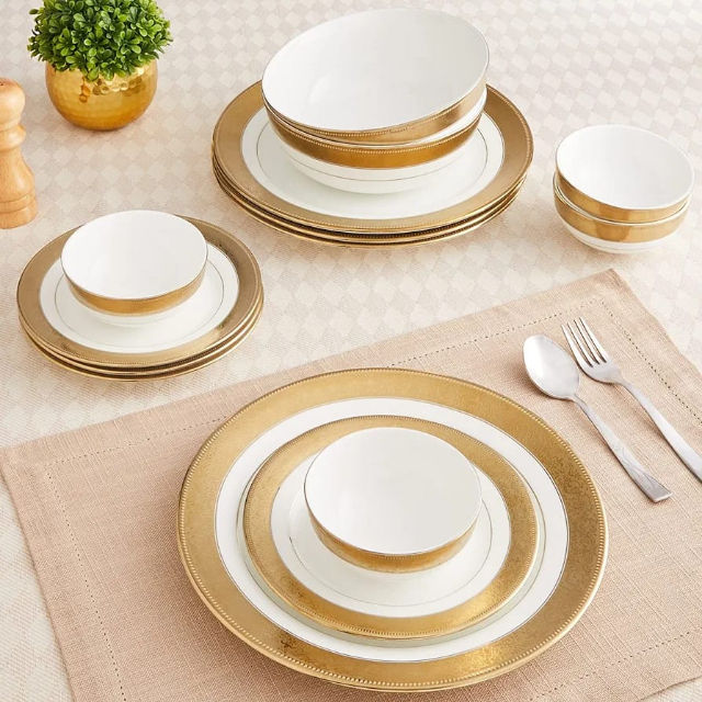 Ceramic 14 Piece Premium Dinner Set | 4 Dinner Plates, 4 Quarter Plates, 2 Large Bowls & 4 Small Bowls | Golden Strip - Floral