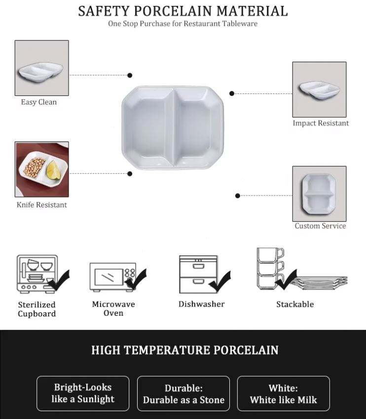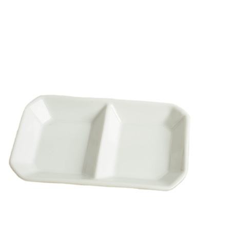 Ceramic 2-Section Rectangular Sauce Dish & Condiment Plate Non-Toxic Dishwasher Safe Eco-Friendly for Restaurant Hotel Use