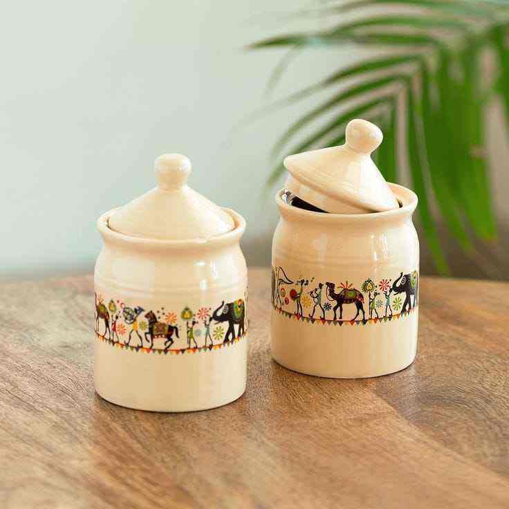 Ceramic Canister Set of 2 For Sugar Coffee Tea home storage Kitchenware Accessories & Wood Storage Box Dinnerware Accessories