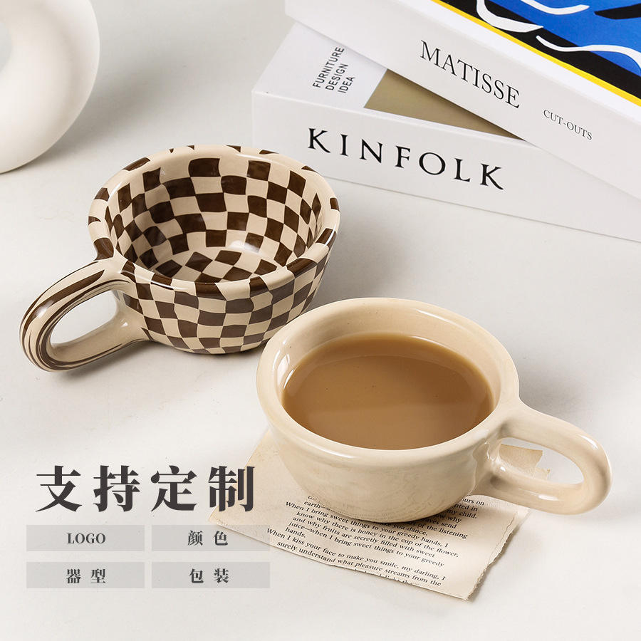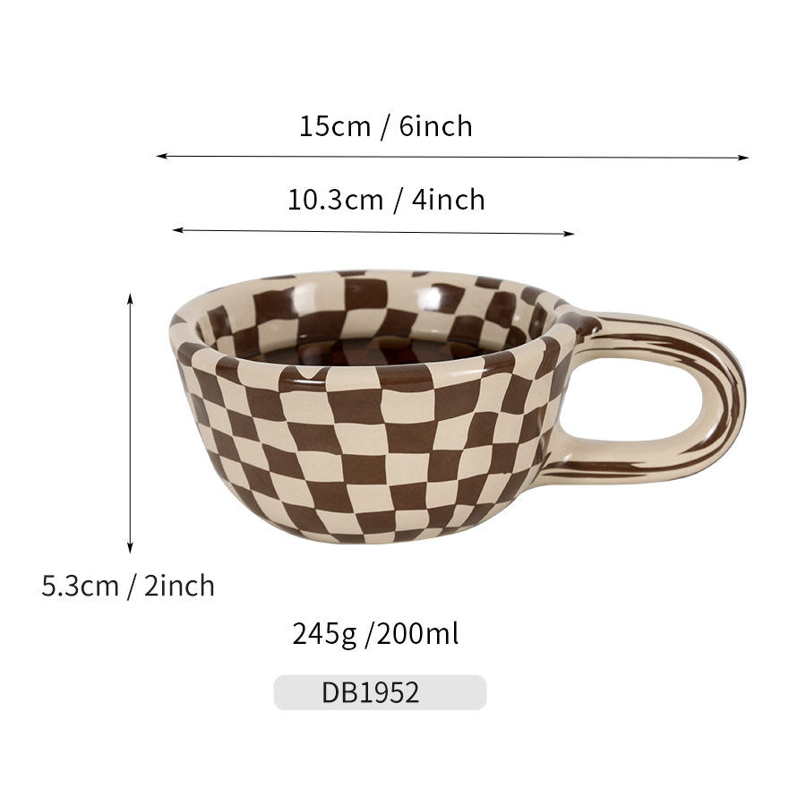 Ceramic Checkerboard Coffee Mug 101-200ml Reusable Gift For Women With Handle Dark Brown Light Brown Black DB1952