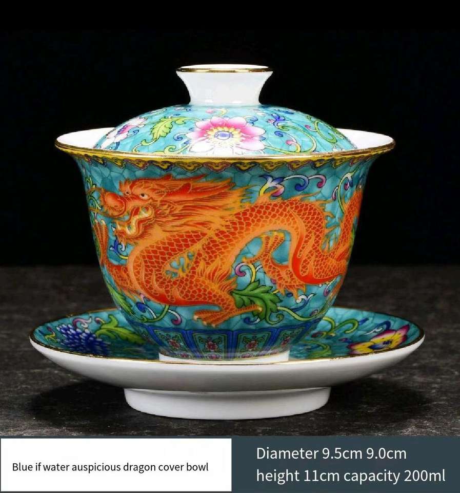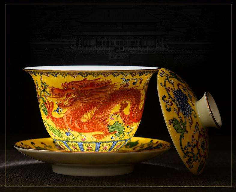 Ceramic Chinese Pattern Custom Porcelain Gaiwan Tea Cups Set