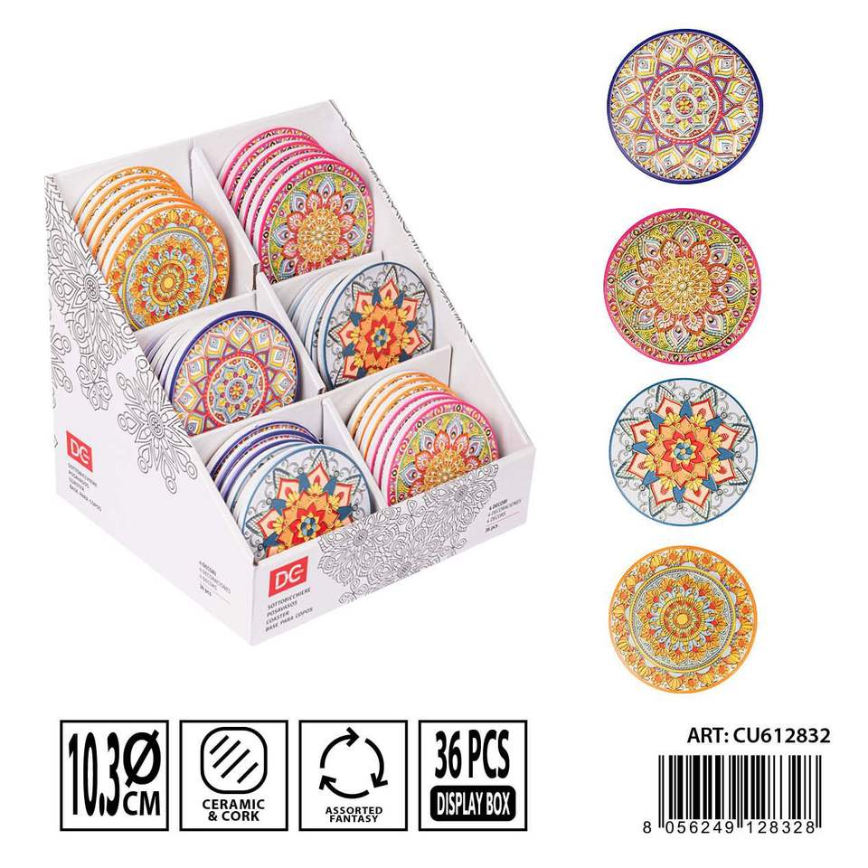 Ceramic Coasters Set 10.3CM Eco-Friendly Durable Cup Coasters with Ornamental Pattern for Home Car Table Use-Blanks Design