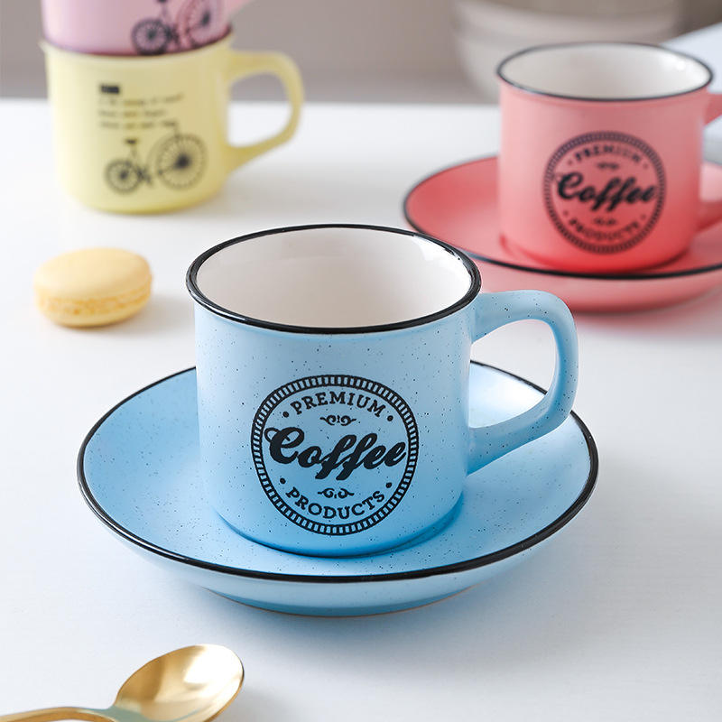 Ceramic Coffee Cup And Saucer Set 101-200ml Screen Printing Cartoon Design For Tea Or Coffee