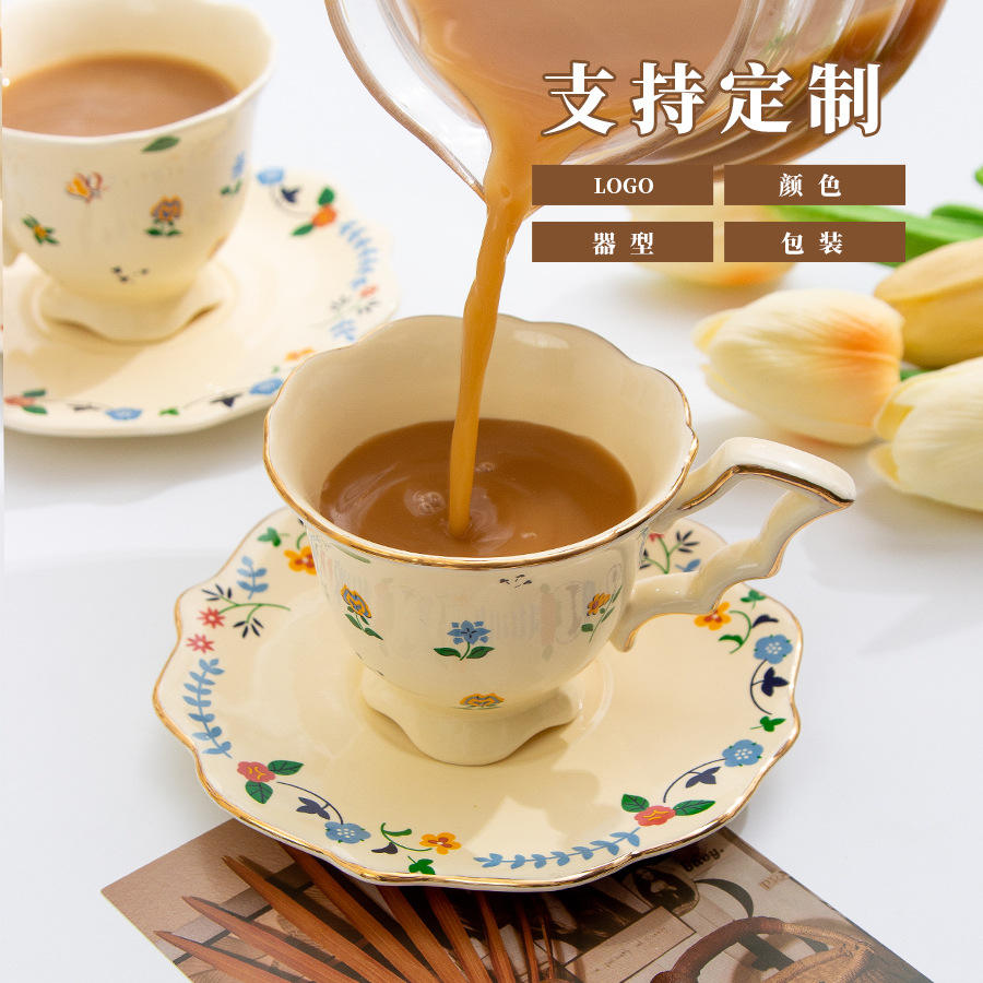 Ceramic Coffee Cup And Saucer Set Floral Pattern Irregular Shape Handle For Afternoon Tea Home Use DB1552DD0964