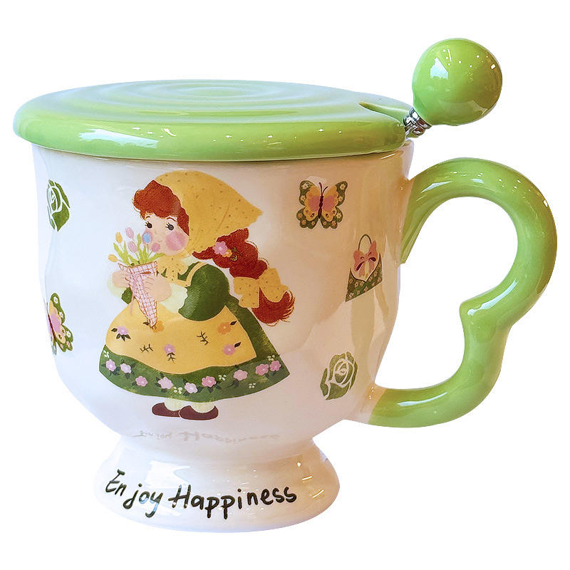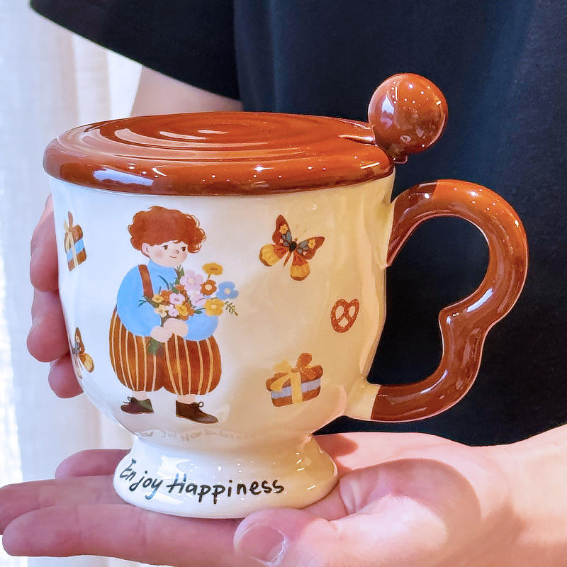 Ceramic Coffee Mug With Lid And Spoon Cartoon Design For Breakfast Home Use Single Cup Set