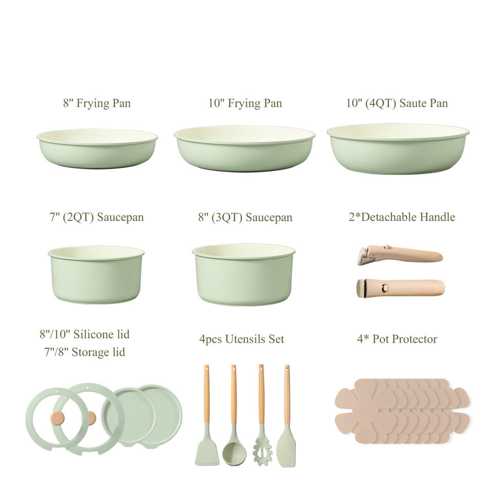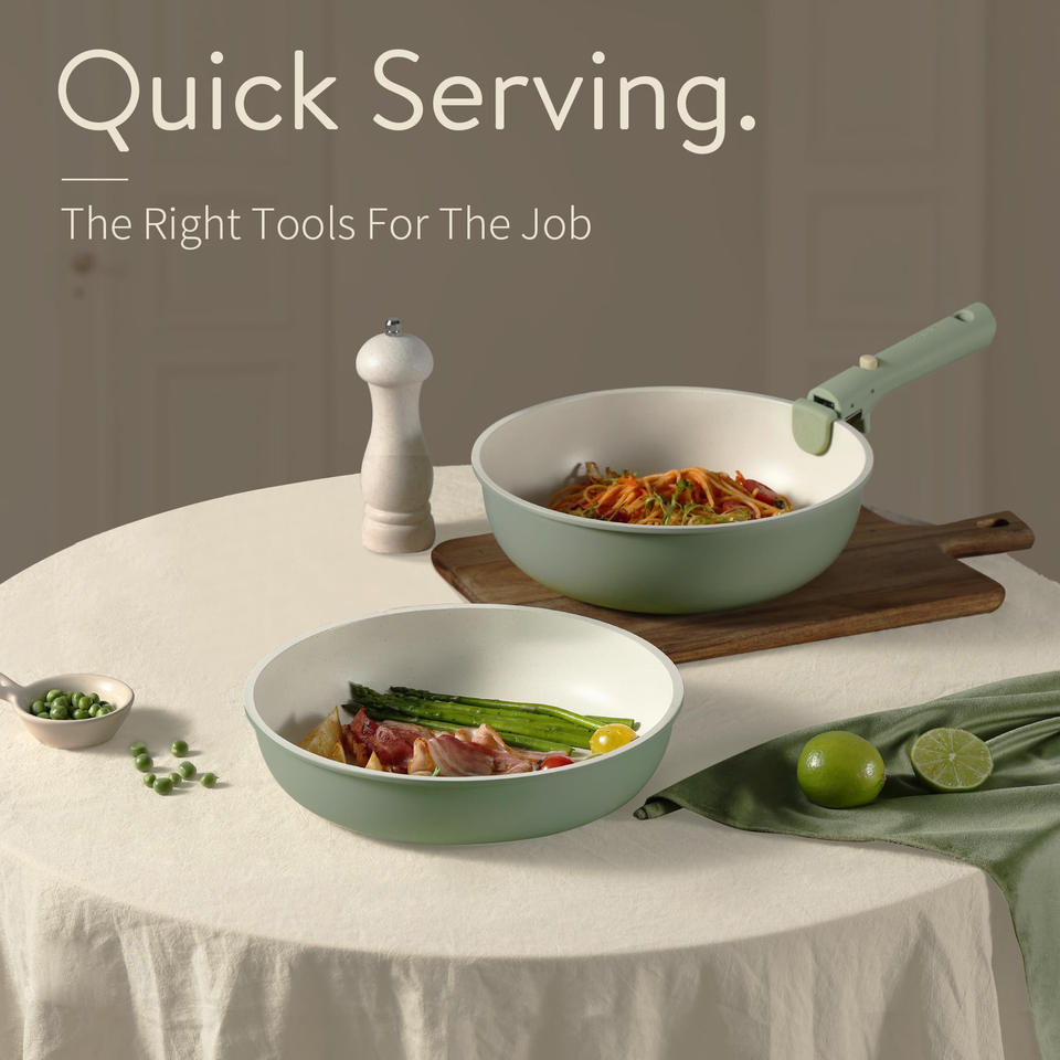 Ceramic Cookware Set 8-10 Inch Frying Pan Saucepan Detachable Handle Non-Stick Kitchen Cooking Set